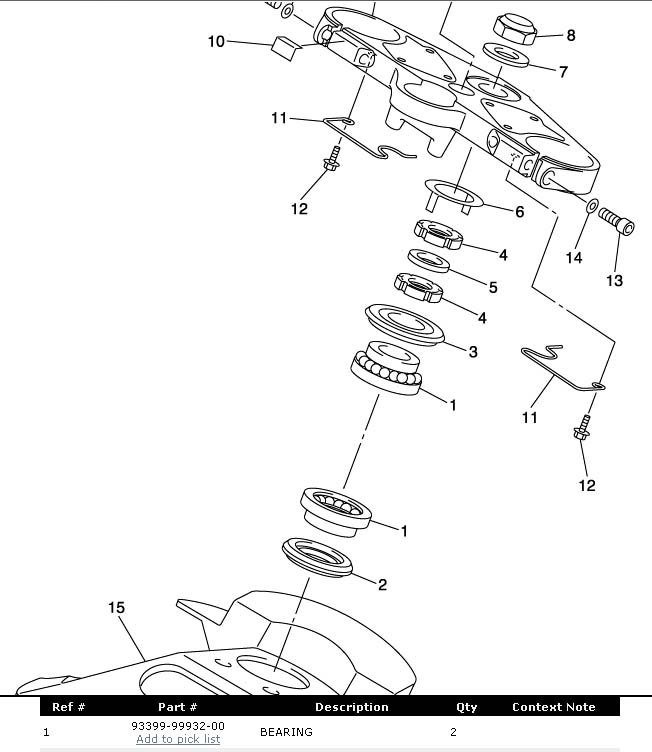 Jim and I went for a test ride afterward and we both agreed that we could tell that this was time well spent. The front end felt much tighter and the feedback from the road was improved. Some extra points of interest. 1. Even though the shop manual shows the bearing assemblies as 3 distinct parts, Yamaha sells them as a single assembly. Each bearing package (outer race, bearing, inner race) is sold as a single part. Part number: 93399-99932-00. Yamaha's telling you to replace both races and the bearing as a set. To replace both bearing sets (upper and lower) you'll need 2 each of that part number.