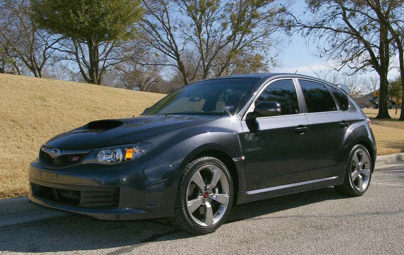 While waiting for the the coffee to perk, I went out and installed the color-matched body side molding that arrived for the STi last night.